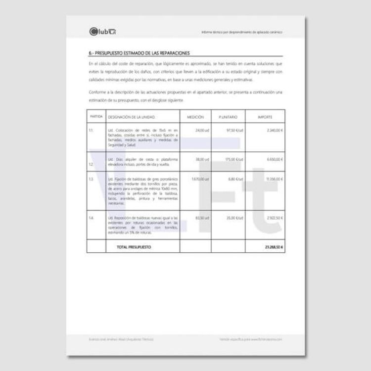 El desprendimiento de las piezas de aplacado de piedra natural de una fachada representa un riesgo importante para los viandantes, además de un evidente perjuicio estético para la edificación. Esta patología ha propiciado la redacción de este informe técnico pericial que te facilitamos en plantilla y que analiza las causas y determina soluciones constructivas alternativas, con su valoración económica.
