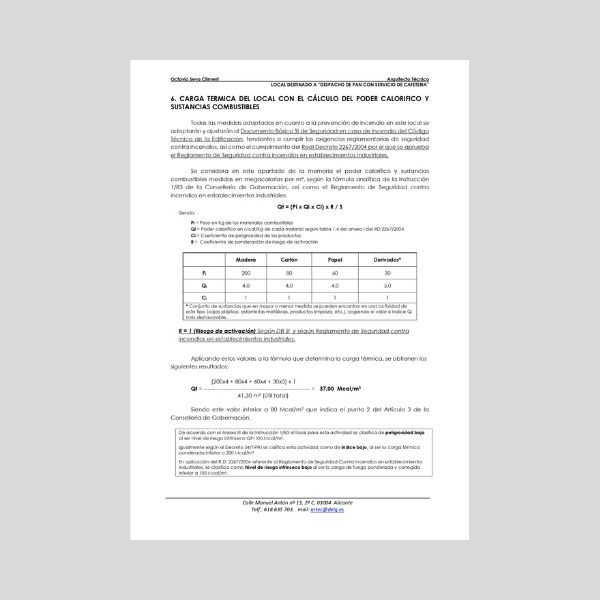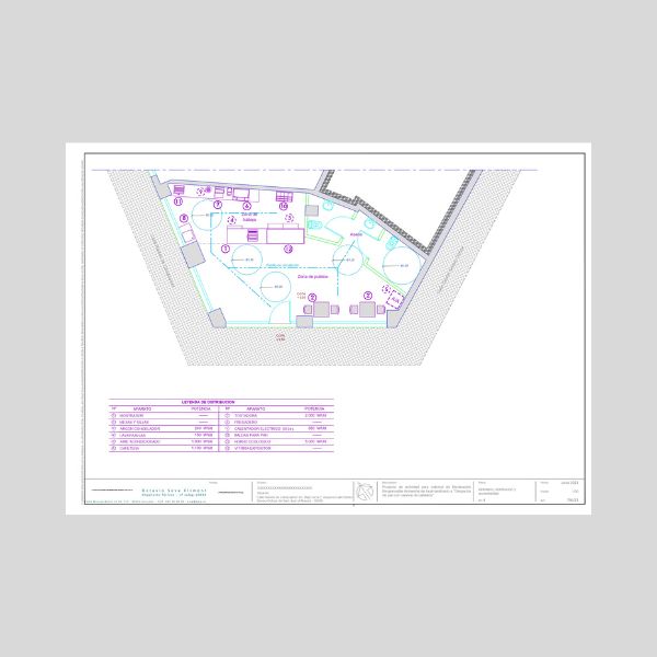 Documentación completa del Proyecto de actividad para la obtención de declaración responsable ambiental de local, destinado a “despacho de pan con servicio de cafetería” (100 págs. en .doc y 7 planos en .dwg)