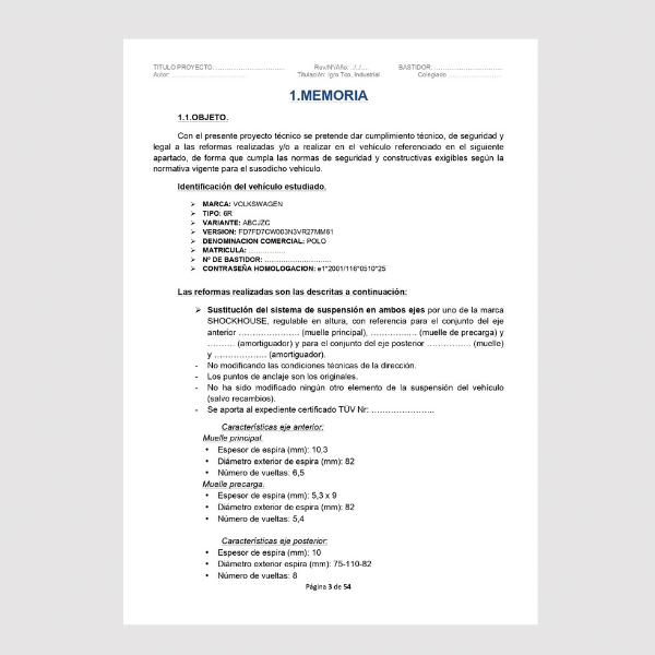 Contenido completo del Proyecto de homologación de suspensión roscada en turismo