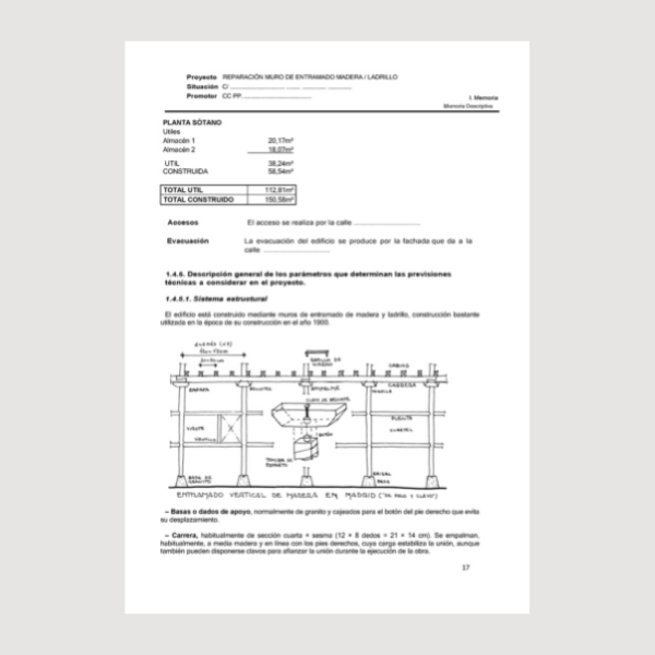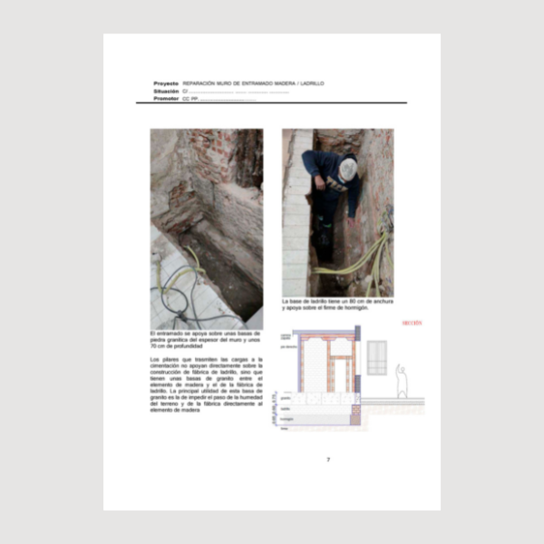 Proyecto completo, básico y de ejecución, de reparación de un muro de entramado de fábrica de ladrillo y madera con humedades